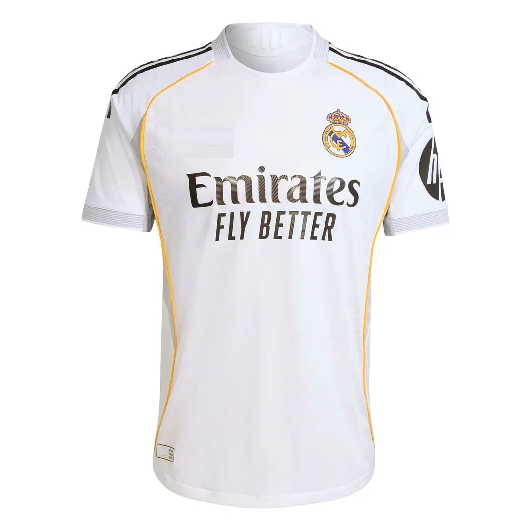 The real madrid 2025-26 home, game version jersey is more than a football shirt—it’s the peak of precision and pride, designed for those who aspire to greatness. Engineered for performance, this jersey mirrors the exact fit worn by stars like Mbappe, Vinicius, Bellingham, Valverde, and Arda Güler during their LaLiga EA Sports clashes. With its athletic cut and ultra-breathable mesh fabric, the real madrid 2025-26 home, game version jersey provides a second-skin feel that supports every movement on the pitch. The signature white color, enhanced with elegant gold details, pays tribute to the club’s enduring legacy while bringing fresh energy to the latest season. Moisture-wicking technology keeps athletes cool under pressure, making this jersey the ultimate choice for competitive players and dedicated fans alike.